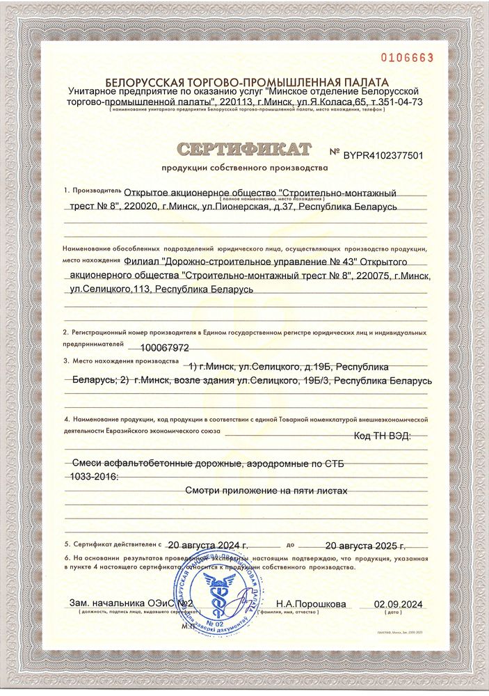 Строительство и ремонт автомобильных дорог и дорожных сооружений. Производство и реализация асфальтобетонных смесей. Устройство асфальтобетонных и цементобетонных дорог и площадок. ДСУ 43 ОАО СМТ 8.